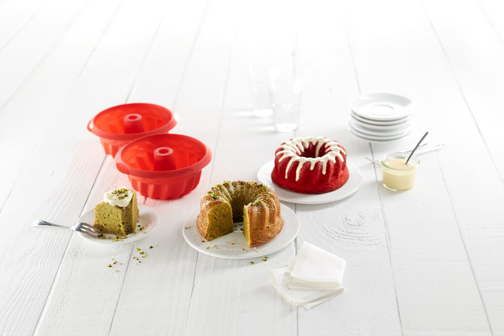Пригответе кръгли малки тестени сладкиши, всеки един печен в отделна форма и напоен обилно със сироп! Всичко това е много лесно и удобно, ако изберете комплект форми Lekue, които са леки, гъвкави и незалепващи!