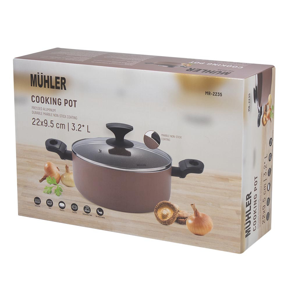 Тенджера със стъклен капак 22cm / 3.2L (висока 9.5cm)