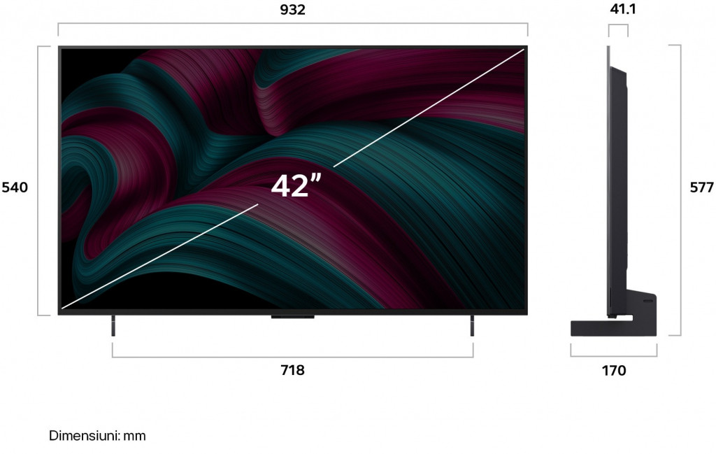 | Размери със стойка (В x Ш x Д см) | 57.7 x 93.2 x 17 |