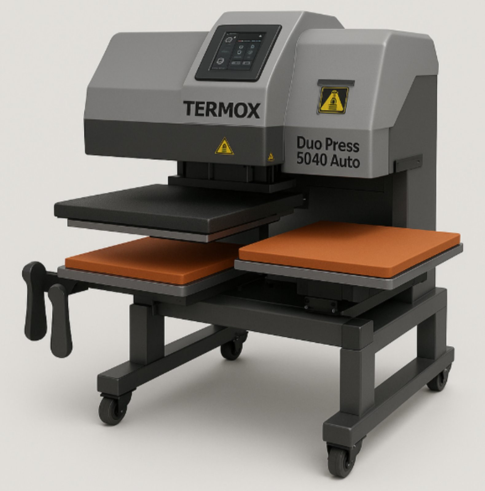 TermoX DuoPress 5040 Auto е висококласна автоматична преса с двойни работни плочи, разработена за тежък текстилен режим и бърза смяна на позиции. Идеална за производство на екипи, чорапи, спортни изделия и персонализирани продукти.