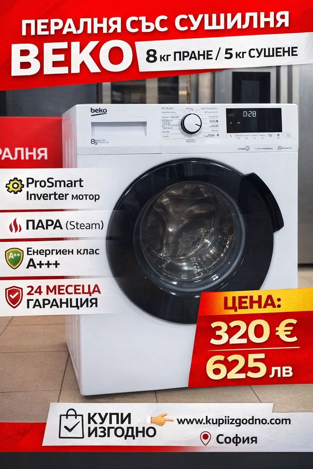 Beko пералня със сушилня 8+5 кг инверторен мотор