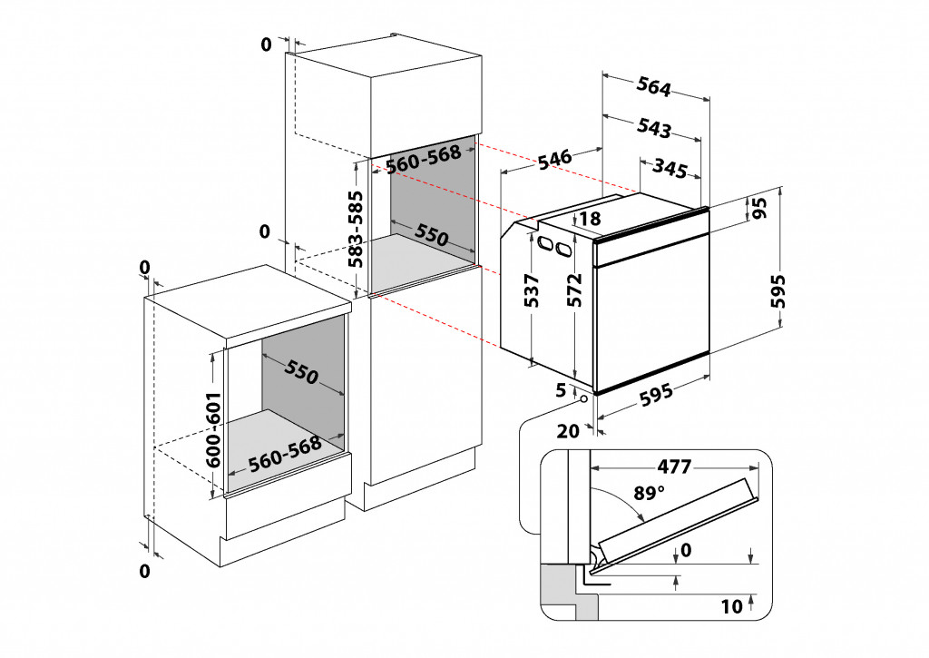 | Размери за вграждане (В x Ш x Д см) | 59.5 x 59.5 x 56.4 |
