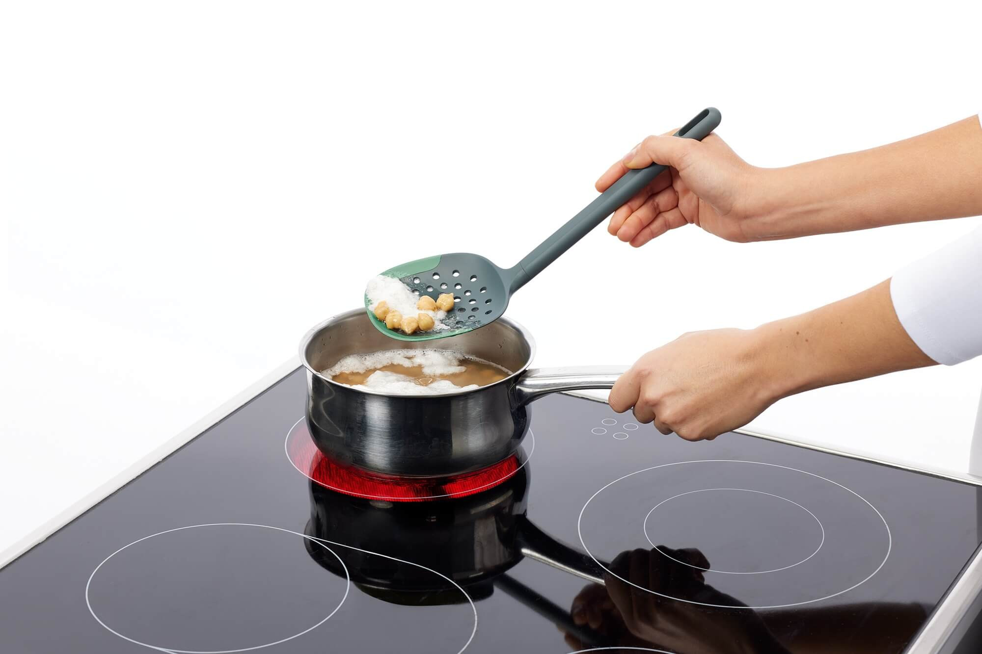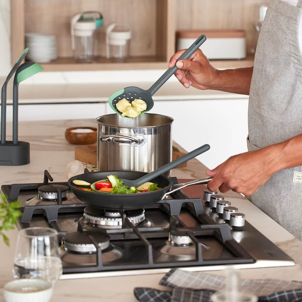 Недраскваща и устойчива на високи температури решетъчна лъжица, с която можете да отцедите излишната вода, да отделите пяната и да сервирате своите ястия. Гответе без да се притеснявате от надрасквания по кухненските си съдове - благодарение на силиконовия гъвкав ръб. Устойчиви и ефективни помощници!
