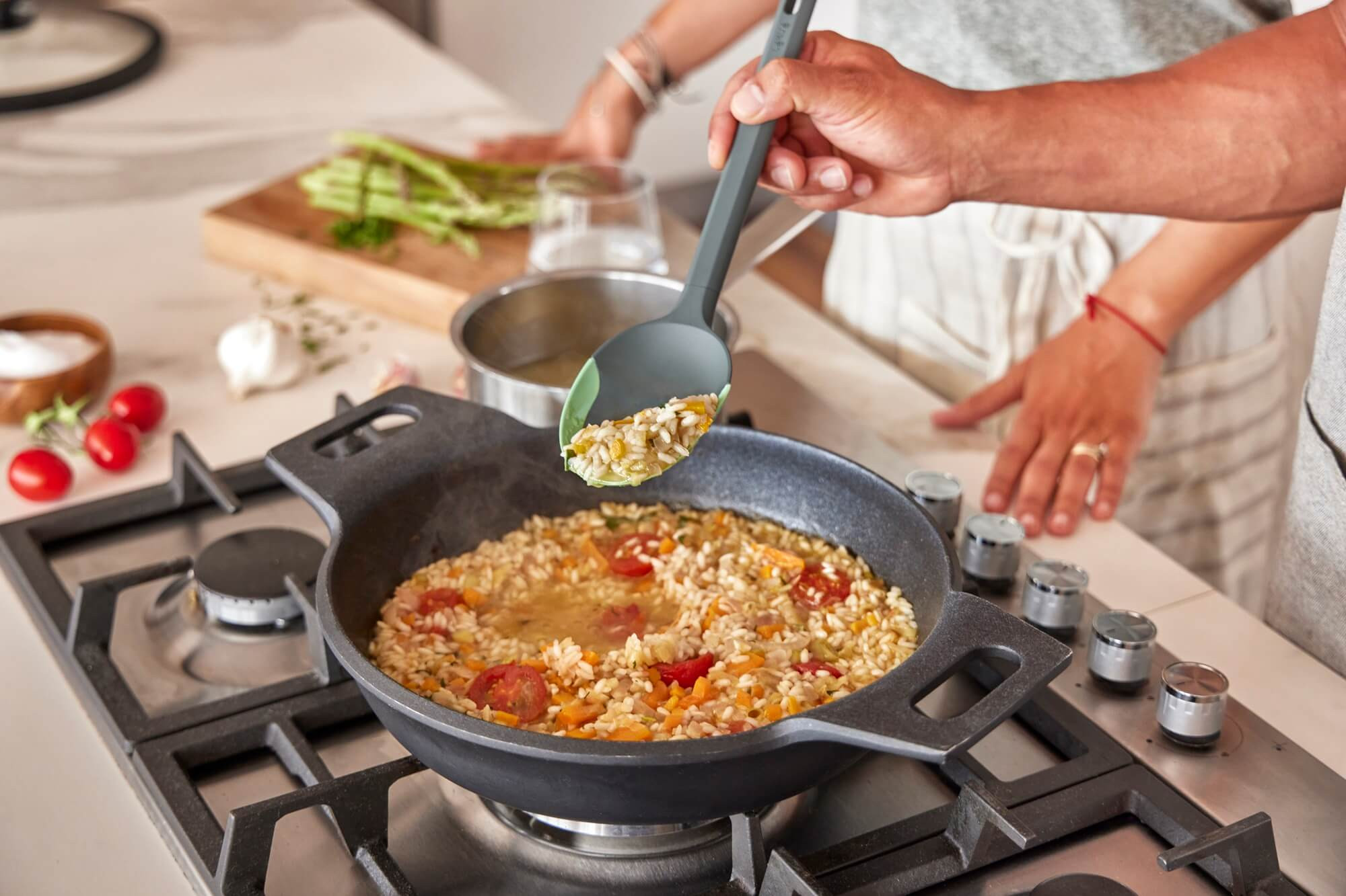 Абсолютно необходим аксесоар за кухнята, който е полезен и за разбъркване и опитване на ястията, за да се уверите, че са перфектни, преди да ги сервирате.