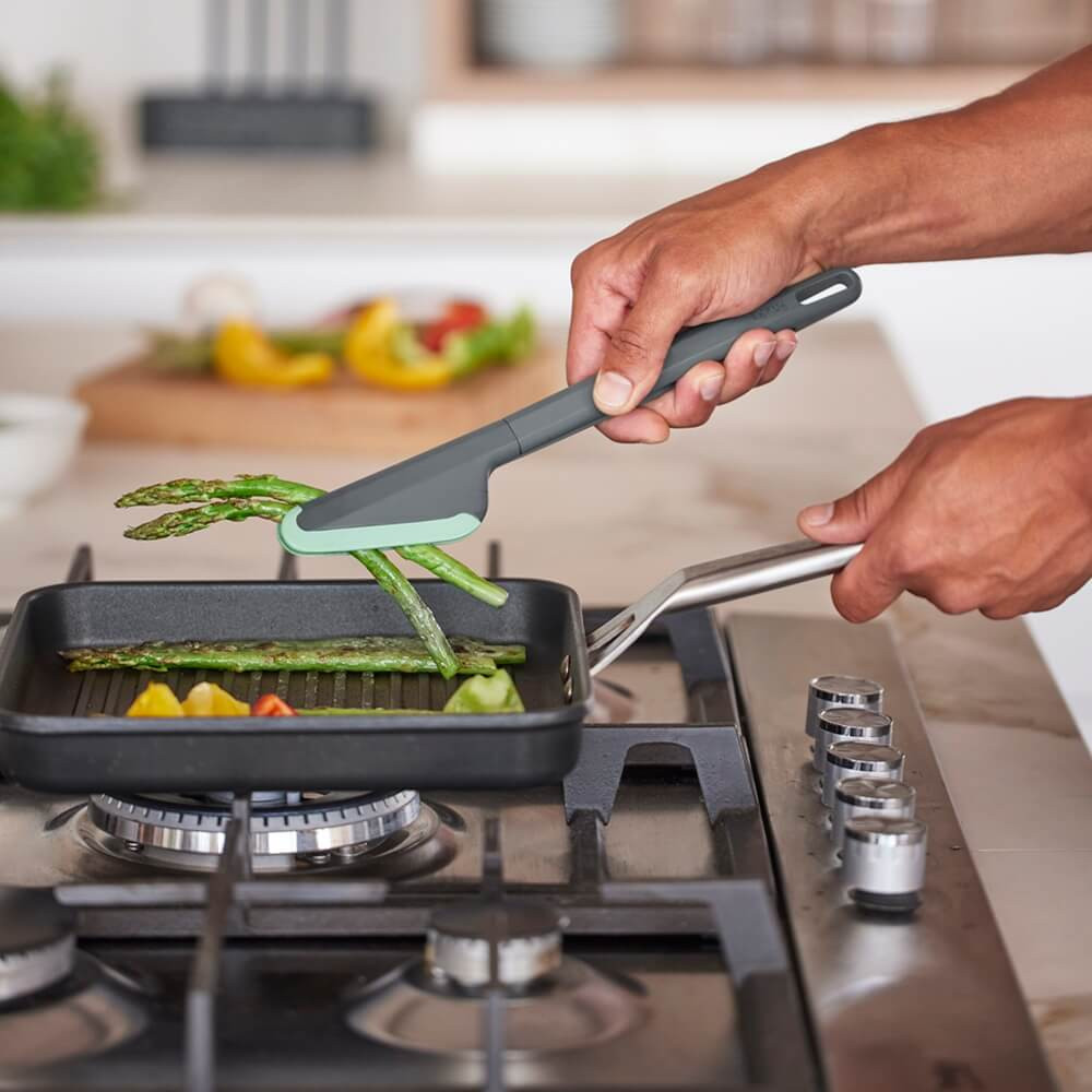 Недраскващи и устойчиви на високи температури кухненски щипки, с които можете да обръщате дори малки парченца месо, риба и зеленчуци. Гответе без да се притеснявате от надрасквания по кухненските си съдове - благодарение на силиконовия гъвкав ръб. Устойчиви и ефективни помощници!