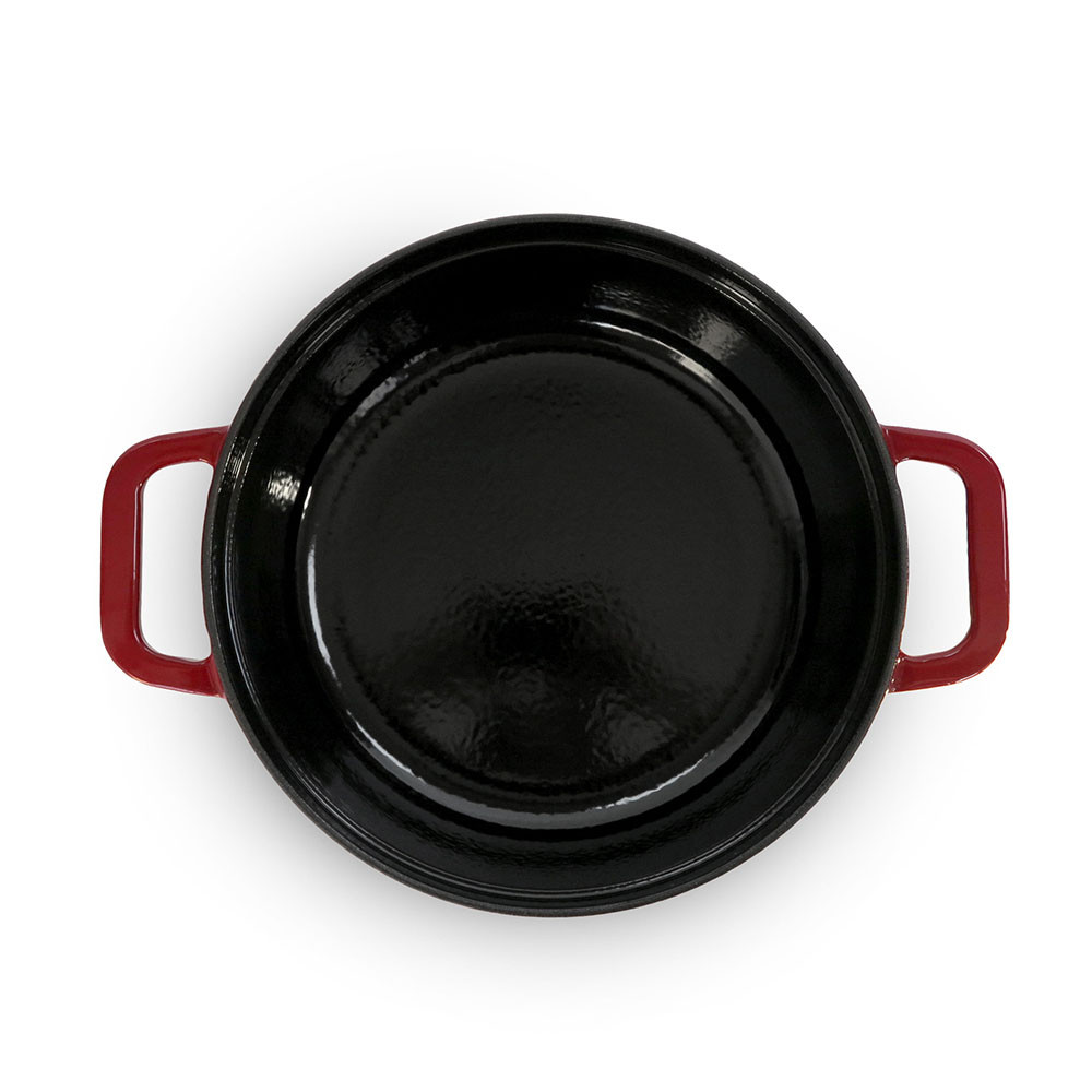 Описание: Висококачествен емайлиран чугун Висока топлинна вместимост - след затопляне остава топъл дълго време. Висока емисивност - отделя много топлинна енергия от повърхността под формата на излъчване, т.е. не готвите само повърхността, която е в контакт с метала, но и храната над нея. Подходящ за всички видове котлони - електрически, газов, стъклокерамичен, халогенен и индукционен. Подходящ за фурна. Не е подходящ за съдомиялни машини! Използвайте дървени, найлонови или силиконови прибори, за да не надраскате емайла. Гответе с течност. Винаги използвайте олио, масло или течност в чугунения съд, преди да започнете да готвите. Не е необходимо да използвате висока температура. В повечето случаи средната настройка ще се справи отлично и ще поддържа постоянна топлина за дълго време. Оставете да изстине преди измиване. Поставянето на студена вода в горещия съд може да "шокира" и да повреди емайла. Не използвайте съдомиялна машина. Препоръчва се миене и сушене на ръка. Изсушете чугунения съд веднага.Ако нещо е наистина е залепнало, използвайте сапун, топла вода и мека гъба, за да я почистите. Дръжките от чугун ще станат горещи по време на готвене в печката и фурната. Винаги използвайте суха плътна кърпа или ръкавици при повдигане.