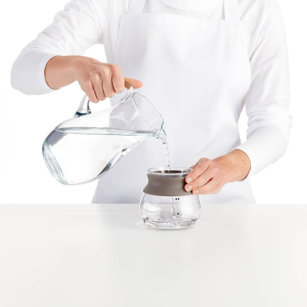 Стъклените съдове имат две маркировки, които отбелязват количеството вода, което трябва да се налее, в зависимост от това дали искате една или две порции.
