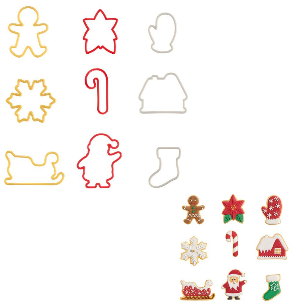 Комплектът съдържа девет мини формички с коледни мотиви за изрязване на фигурки